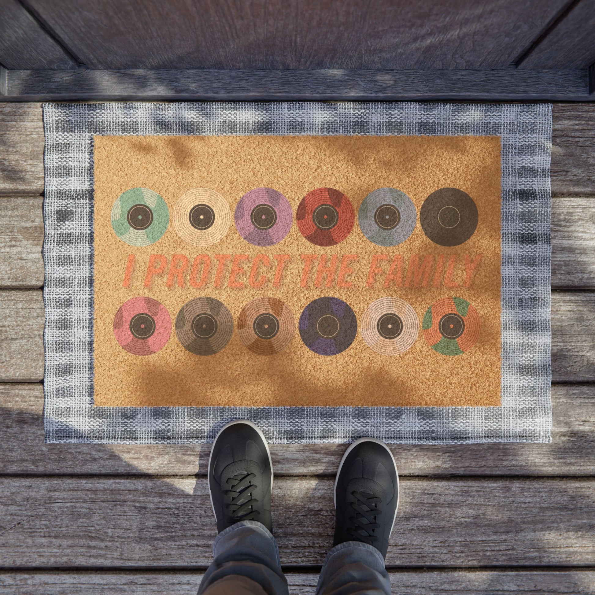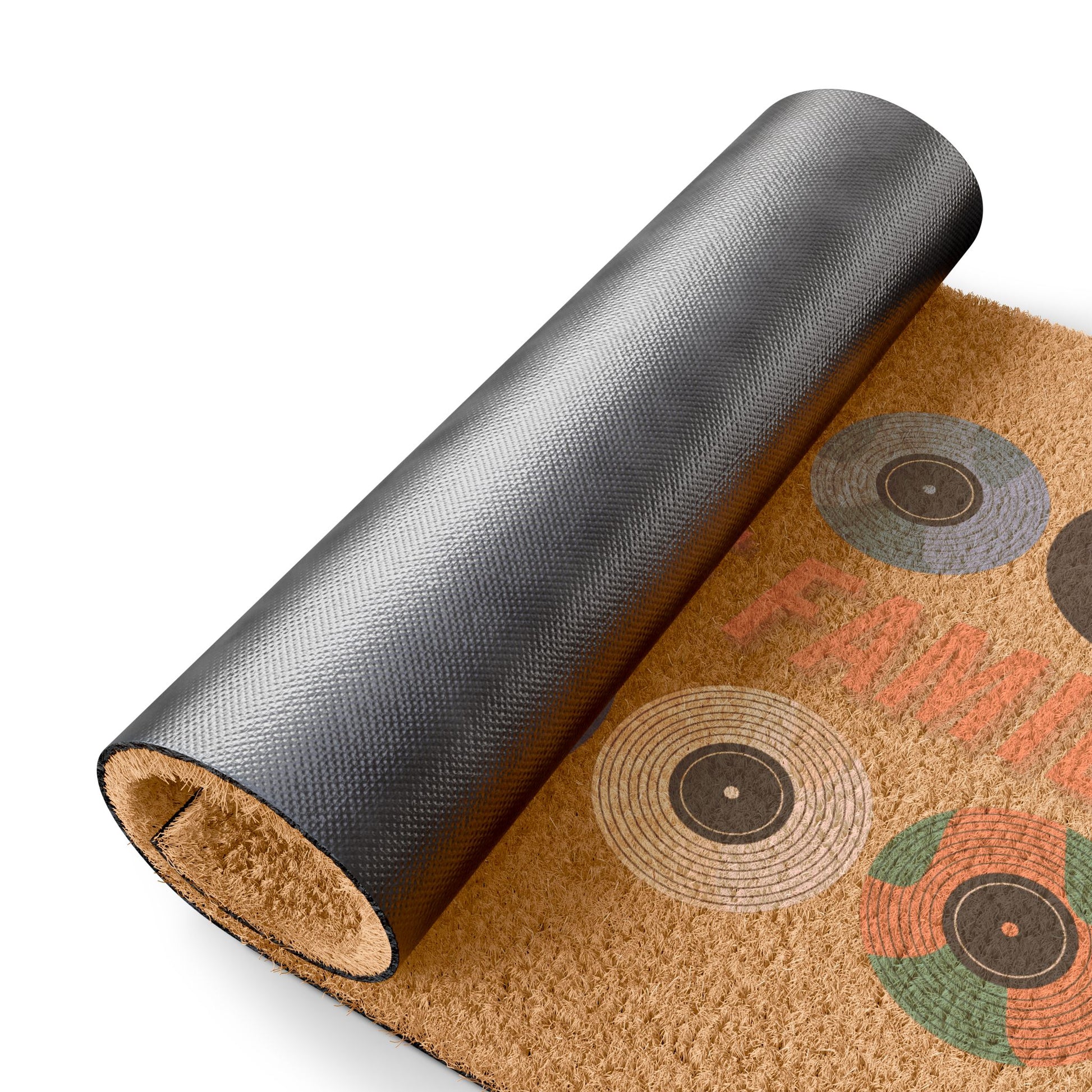 Bring a warm, playful welcome to your doorstep with this eco-friendly coir doormat. Thick grade-A tufted coconut fibers give it a textured, natural look that traps dirt and brushes off shoes while the understated row of colorful record motifs adds a touch of retro charm. The sturdy black vinyl anti-slip backing holds the mat securely on porches and entryways, so it stays put through foot traffic and light weather. It’s assembled in the USA from globally sourced parts and sized to fit most standard doors — a simple, classic way to set the tone before guests even step inside.