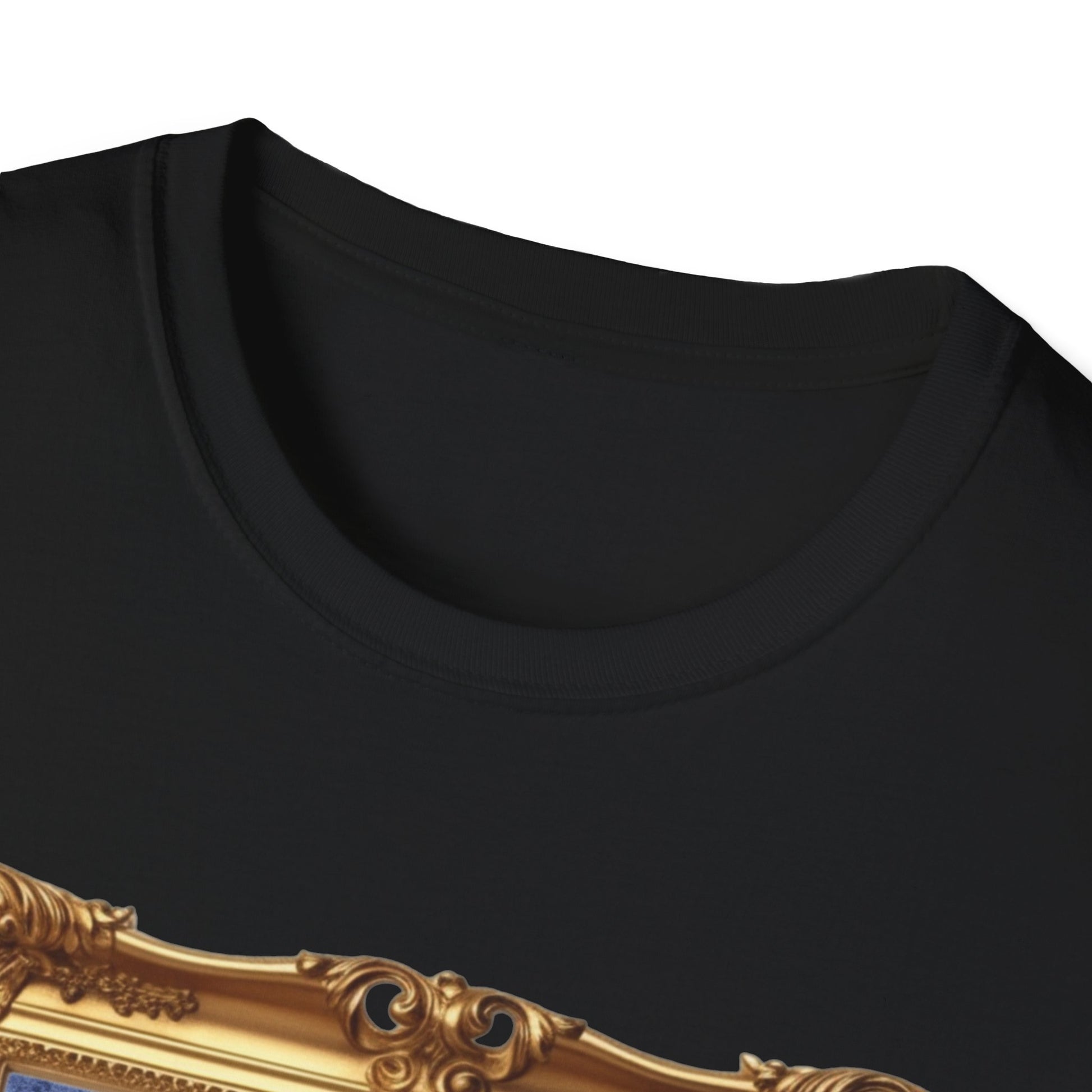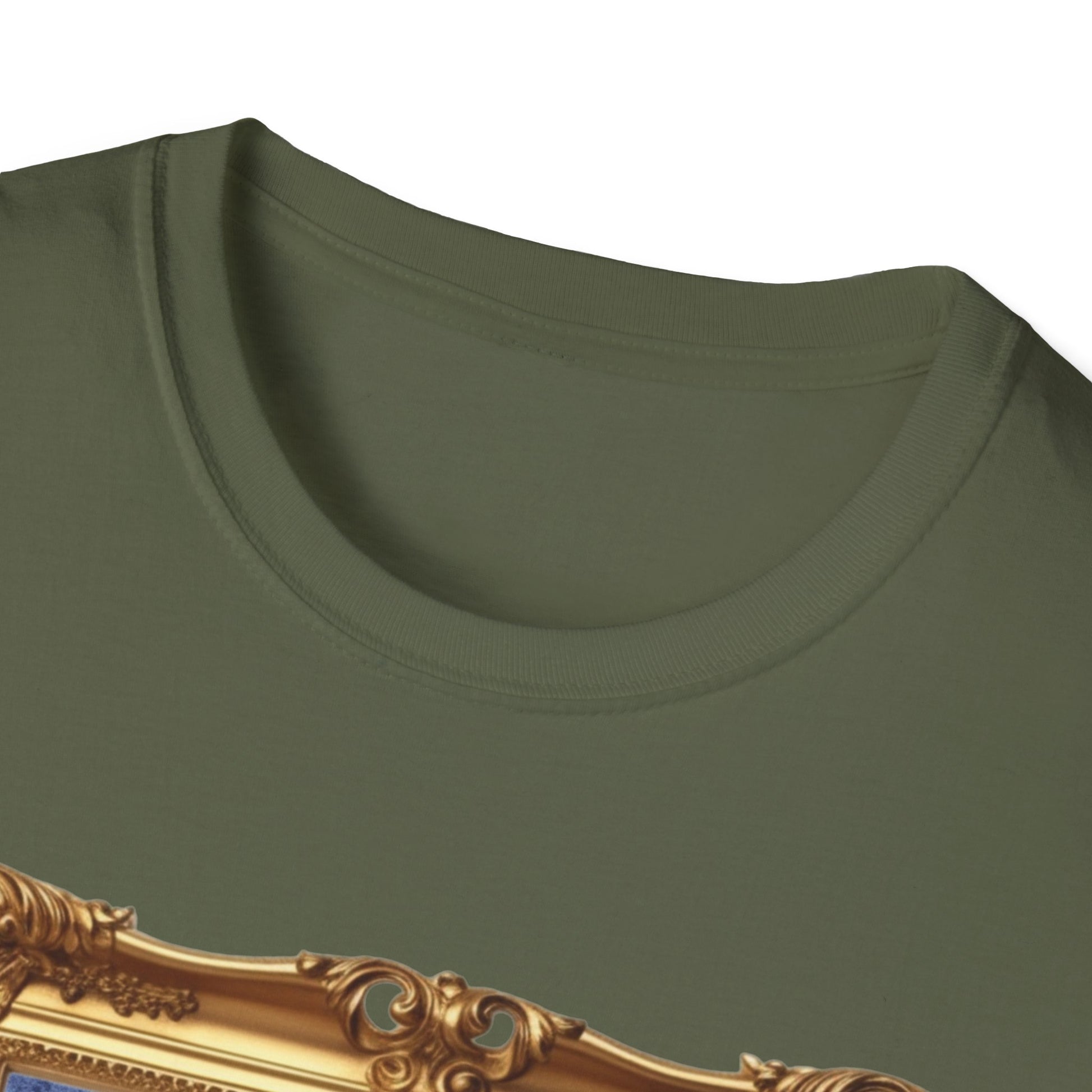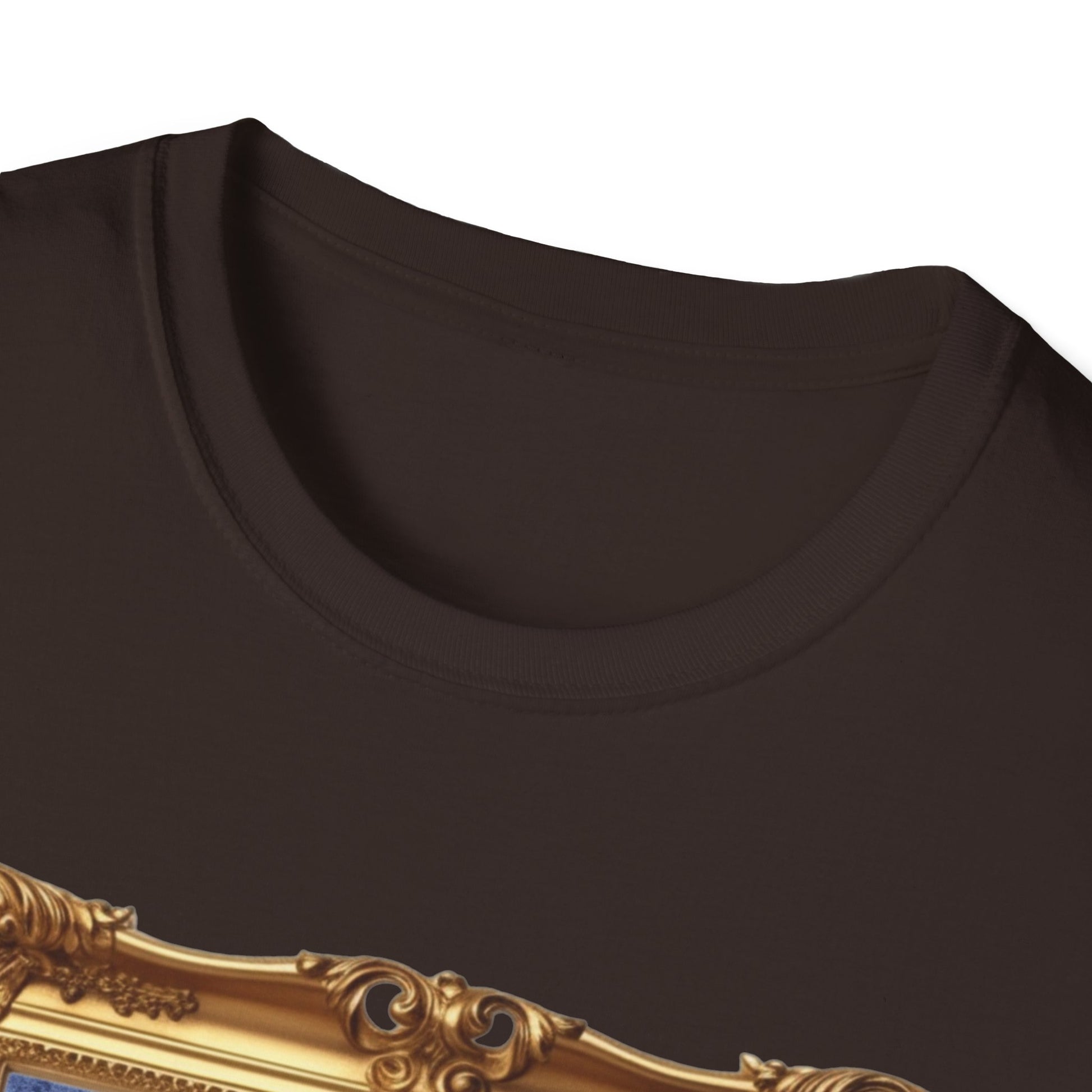 This lightweight cotton tee carries a playful, nostalgic energy — a faux-antique portrait framed in ornate gold sits on the chest like a family heirloom gone delightfully wrong. It feels like a wink to people who love campy nostalgia, retro portraiture, and humor that lives in the small details. Wear it to casual hangs, game nights, gallery strolls with friends, or when you want to spark a conversation without saying a word. The crew neck and classic fit keep the look clean while the soft, ring-spun cotton body keeps you comfortable all day. The framed portrait print adds character and an offbeat charm that becomes part of your everyday style, blending comfy basics with a touch of theatrical personality.
